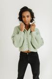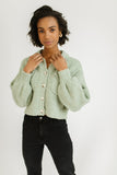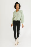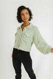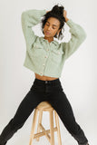 - sage // collared, cropped, double bust pockets, working buttons, long balloon sleeves