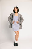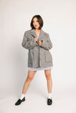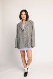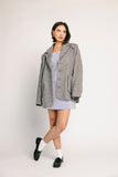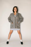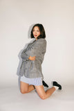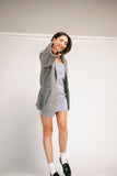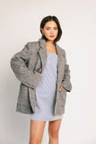 perfectly slouchy with a menswear-inspired feel, this oversized grey blazer instantly elevates any outfit. the slightly boxy silhouette gives it a sophisticated edge, while the subtle distressing keeps things casual. a must-have for office outfits, brunch dates, + everything in between.