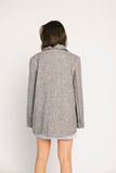 - heather grey // lapel collar, buttons, pockets, raw edges detailing, lined, back slit