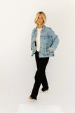 - paired with our rhea asymmetrical sweater top + beau denim jacket