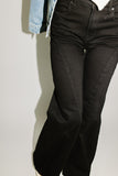 these vintage-inspired wide leg black jeans are an all-season staple. they have a high-waisted, semi-flared silhouette, + feature the most epic stitched detailing along the sides. full of versatility, you can dress them up with a blouse + heels, or down with a tee + sneakers.