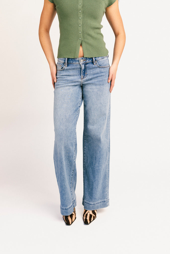 your new ride-or-die bottoms, these low rise wide-leg jeans will take any outfit to the next level. they have a vintage-inspired wash with subtle fading for that luxe, lived-in look. the perfect everyday denim to style with tanks + tees in the spring + summer, or sweaters + jackets in the fall + winter.