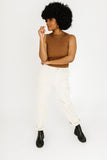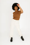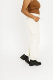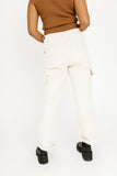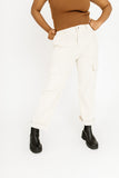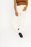 - cream // straight leg, corduroy, one button zip fly, belt loops, pockets