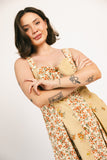 a floral button-up dress that’s super sweet + kinda spicy. it has an effortlessly flowy silhouette + features chic patchwork floral + corduroy panels. full of styling possibilities, we love it for family pictures, brunch dates, + day-to-day shenanigans.