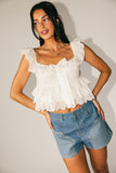 • denim // high waisted, one button fly zip, pockets, belt loops, contrast striped detailing