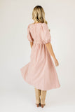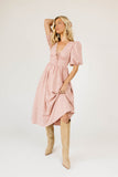 feminine, flirty, + full of frolicking potential, our zoco exclusive adeline midi dress will take you from day to night, season after season. detailed with a vintage-inspired pink pattern, it has a timeless a-line silhouette with a tie front v-neckline + dainty puff sleeves. a compliment magnet, it’s the perfect midi dress for garden parties, family pictures, + everything in between.