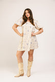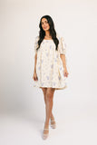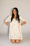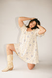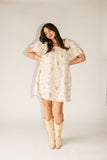 dainty + enchanting, this short sleeve mini dress was made for garden parties, brunch dates, + spontaneous spring things. it features a darling floral bunny print + a dreamy ruffled neckline. whether you dress it up with heels, or down with flats, it’s the perfect piece for spring + summer.