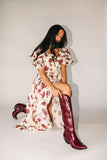 from family pictures to weekend errands, our zoco exclusive daymaker is the best “not so basic” dress. featuring a chic red floral pattern, this puff sleeve maxi dress was made for every season, situation, + occasion.