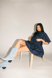 the mvp of versatility, this short sleeve navy shift dress will take you from day to night, season after season. with its chic high neckline + easy silhouette, it’s the perfect piece to dress up for dinner parties + wedding receptions, or down for family pictures + lunch dates.