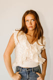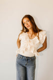 - ivory // v-neckline, slightly cropped, flutter sleeve, ruffle details