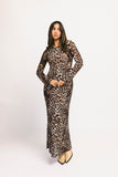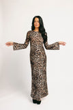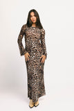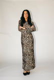 be on your boldest behavior with our zoco exclusive be right there mesh dress. with its stretchy mesh material + flared long sleeves, this y2k-inspired leopard-printed maxi dress is perfect for dinner dates, cocktail parties, + girls' nights out.
