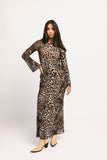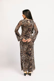- leopard // maxi length, crew neckline, mesh overlay, fully lined, sheer bell sleeves, keyhole back button closure, lettuce hem