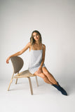 super sweet + extra flirty, this blue striped tank dress will take you from casual outings to dressy date nights. with its easy silhouette + adjustable tie straps, it’s a throw on + go situation you’ll wear for years to come.