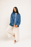 your new ride-or-die denim jacket, this zoco exclusive is the layer you’ll end up throwing over everything. featuring the most perfect oversized fit + subtle distressed details, it gives off major ‘90s energy in the best way possible. wear it with shorts, trousers, or over a dress—this one works year-round.