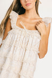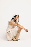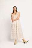 the perfect combination of flirty + romantic, this ruffled tiered maxi dress will take you from dinner dates to bridal soirées. featuring an elegant square neckline + intricate lace details, it’s a timeless piece you’ll reach for every time “something special” is on the agenda.
