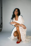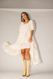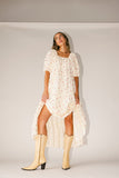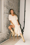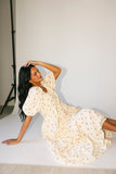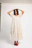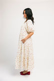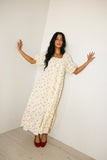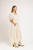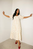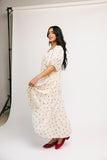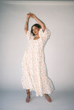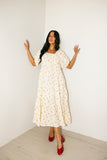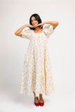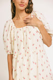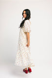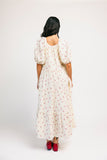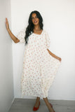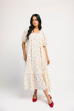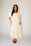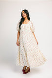 - strawberry bliss + cream base // maxi length, puff sleeve, tiered skirt, elastic scoop neckline, pockets, lined