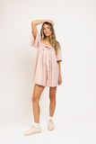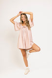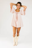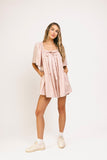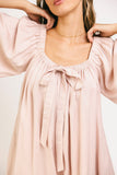 - pink // square neckline, elastic neckline, front bow detail, pockets, lined body