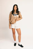 country vibes, but make it super chic. this vintage-inspired cow sweater is the perfect statement piece for any outfit. with its luxe, heirloom look + cozy, worn-in feel, you can easily dress it up or down, day or night.
