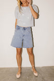 the jorts are jorting this summer, + these medium-wash denim darlings are proof. with their relaxed fit, longline silhouette, + classic hemline, they’re full of vintage vibes + versatility. a summer outfit essential, we love them for concerts, beach days, + casual hangs.