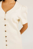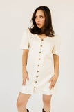 - cream // v-neckline, mini length, buttons, sleeve pleat detailing