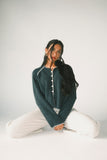 - grey // scoop neckline, working buttons, hand sewn contrast whipstitch detailing along edges, open bottom half