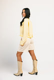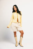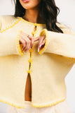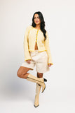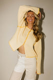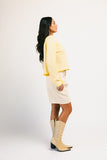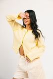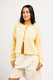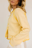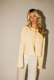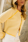 brighten up any outfit with this cropped pastel yellow cardigan. a classic vintage-inspired sweater, it has a relaxed fit, chic toggle buttons, + a flirty open front hem. the perfect all-season cardi to style with your favorite denim, or throw on over a flowy sundress.