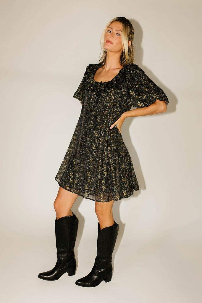 mini good luck puff sleeve dress // black floral *zoco exclusive*