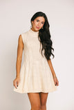 fun + flirty, this sleeveless sweater dress is the perfect ‘throw on + go’ situation for fall + winter. it features a chic mockneck + classic cable knit details. full of versatility, it’s a knit mini dress you can pair with loafers, boots, + everything in between.