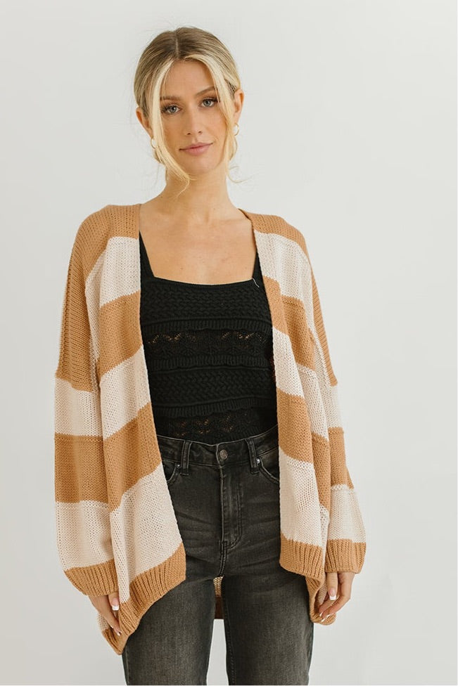 - taupe + cream stripes // drop shoulder, long bubble sleeves