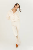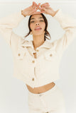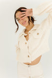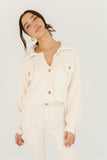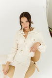 - ivory // collared, cropped, double bust pockets, working buttons, long sleeves