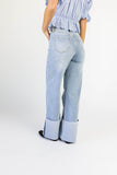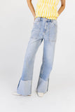 - medium wash // pocket detail, wide leg, cuff hem, zip fly