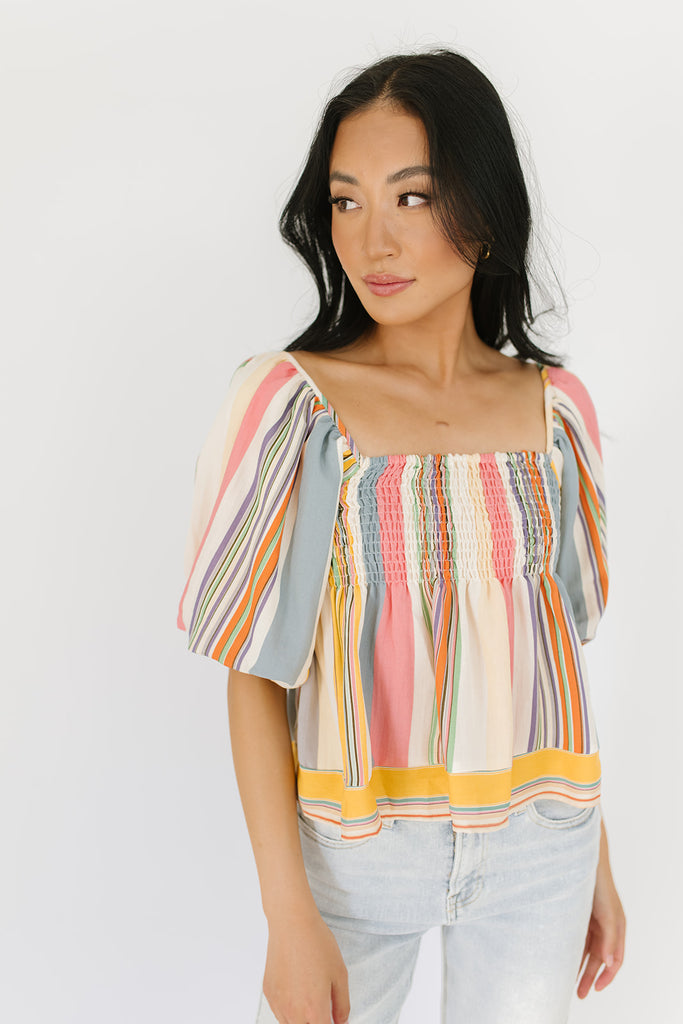 - multicolor // square neckline, balloon sleeves, babydoll hem, smocked back