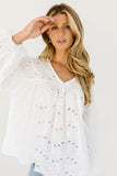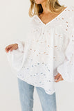 - white // wide v-neckline, puff sleeves, eyelet detailing, elastic cuffs