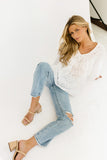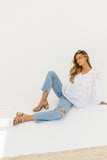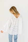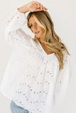 a “wear anywhere” long sleeve blouse that’s full of feminine energy. it features balloon sleeves, dainty eyelet details, + subtle floral embroidery throughout. the perfect white blouse to dress up with a skirt for work, or down with denim for weekend errands.