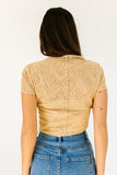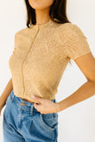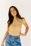 this not-so-basic cropped top will take you from day to night, season after season. made in the perfect neutral tan color, it’s slightly sheer + has a chic high neckline. a must-have ‘going out’ top or elevated basic top to add to your spring // summer wardrobe.