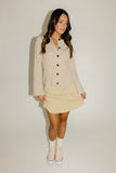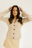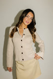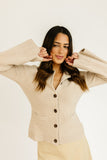 both trendy + timeless, this neutral button-up cardigan is a spring outfit essential. it has a tapered silhouette + features retro-inspired flare sleeves. the perfect elevated cardigan to dress up with skirts + trousers, or down with jeans + sneakers.