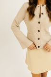 - beige // scoop neckline, buttons, faux pockets, tapered bodice, flare sleeves
