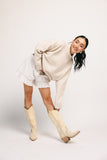 - oat // crew neckline, drop shoulder, ribbing at neckline hem, and cuffs