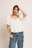 the pair-with-anything piece your closet’s been waiting for, this white puff sleeve top will take you from day to night, season after season. with a stretchy square neckline + breezy silhouette, it’s the perfect combination of cute + comfortable. dress it up with a maxi skirt + heels, or down with baggy denim + sneakers.