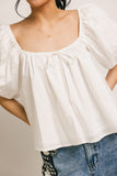 - white // square neckline, puff sleeves, elastic cuffs, elastic neckline, tie detailing, lined