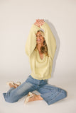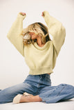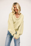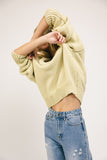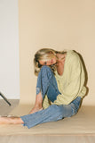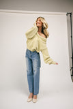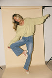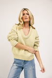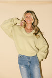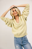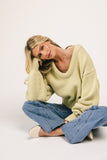 the epitome of cute + cozy, this slouchy scoop neck sweater is everything you’ve ever wanted + more. luxuriously soft + thick, it has an oversized silhouette with long balloon sleeves. whether you layer it over tees + dresses or style it on its own, this pastel lime sweater was made to be worn over, + over, (+ over) again.