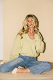 - creamy lime // thick rounded neckline, cuffed, drop shoulder, texture detail on sleeve, extra long sleeves