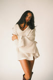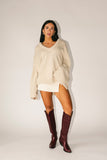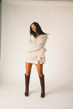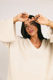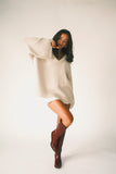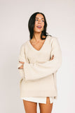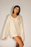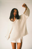 the epitome of cute + cozy, this slouchy scoop neck sweater is everything you’ve ever wanted + more. luxuriously soft + thick, it has an oversized silhouette with extra long flare sleeves. whether you layer it over tees + dresses or style it on its own, this chunky oversized sweater was made to be worn over, + over, (+ over) again.