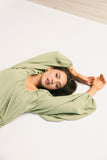 the long sleeve sister to our famous daymaker dress, this easy, breezy beauty will take you from day to night, season after season. with its flowy silhouette + stretchy elastic neckline, this long sleeve sage maxi dress is comfortable enough for errands, + cute enough for dinner dates.
