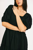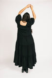 - black // maxi length, puff sleeve, tiered skirt, elastic scoop neckline, pockets