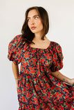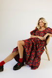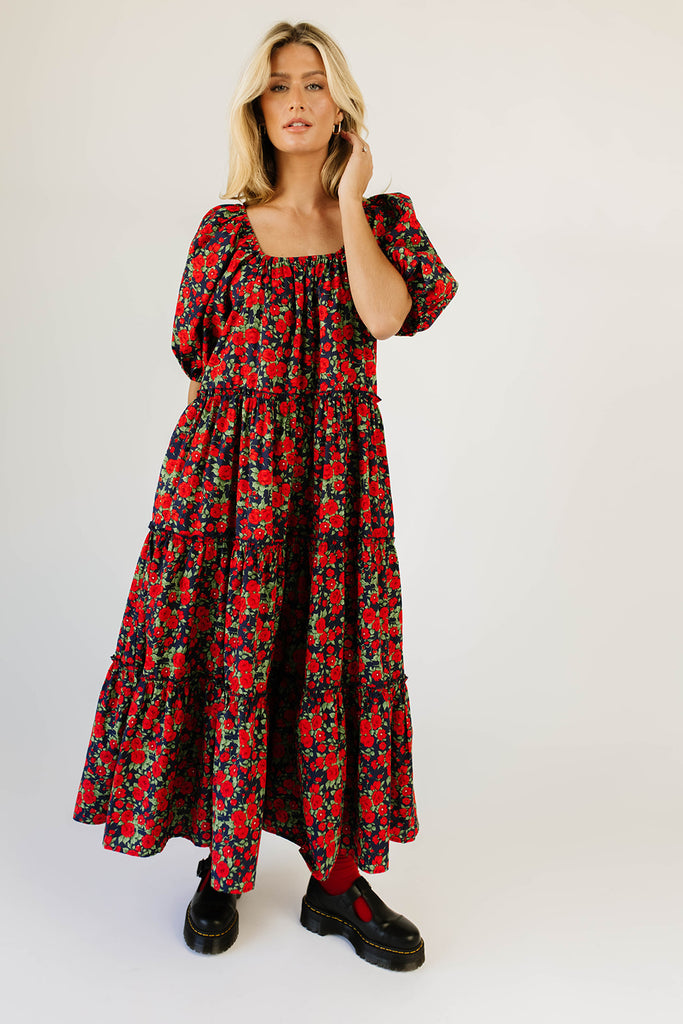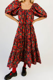 - red floral // maxi length, puff sleeve, tiered skirt, elastic scoop neckline, pockets
