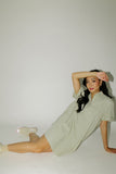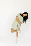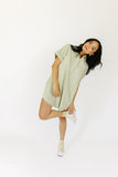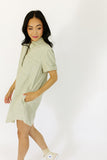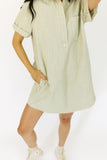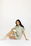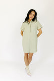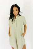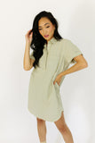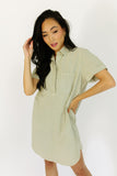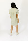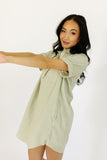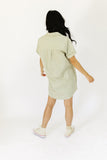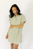 - faded sage // mini length, collared, buttons, pockets, rolled sleeves