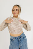 - mocha + cream // mock neck, lettuce hem, slightly cropped