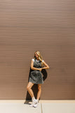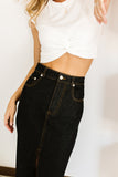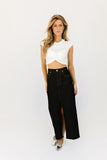 - paired with our make way denim maxi skirt // black + mary denim mini dress