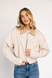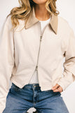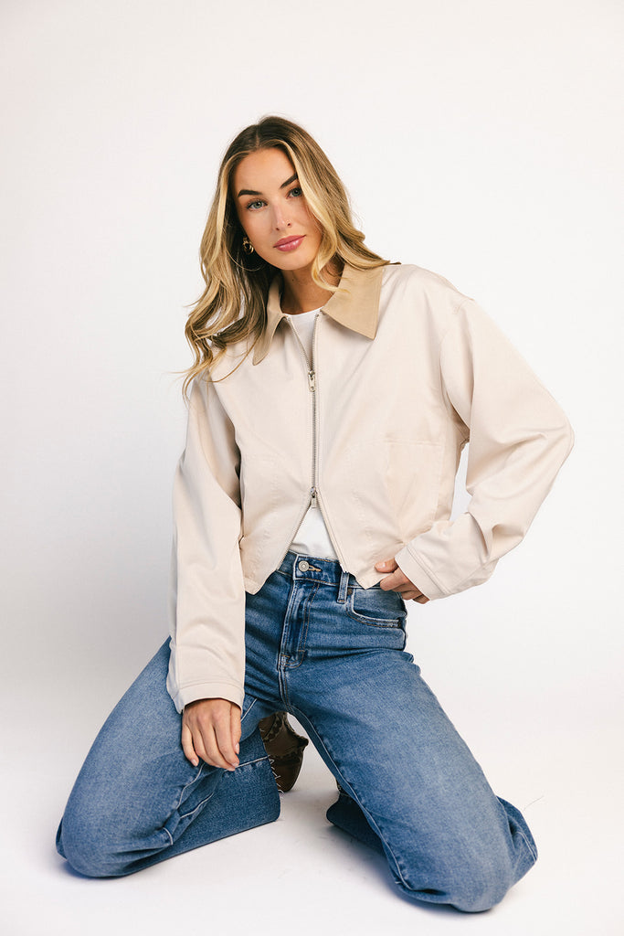 a lightweight jacket with a luxurious look + feel, it has a cropped, bomber-style shape that makes it perfect for throwing on + going. with its neutral colorway + chic silhouette, it’s the kind of layer you reach for over + over (+ over) again.
